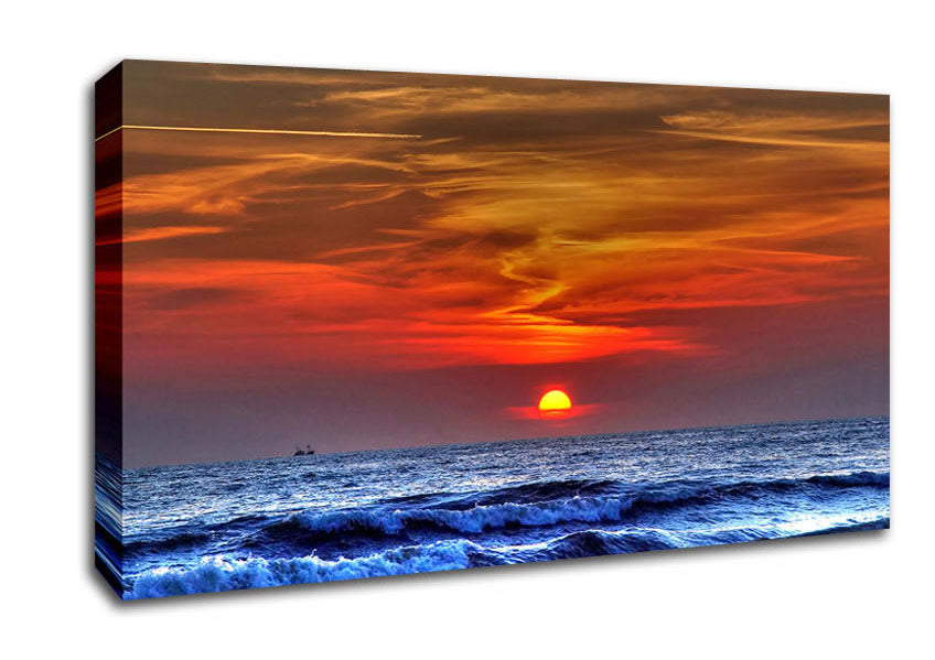 Sunset On The Beach Wide Canvas Print handmade in the UK. Stretched over a 2 inch thick wooden box frame, ready to hang on your wall.