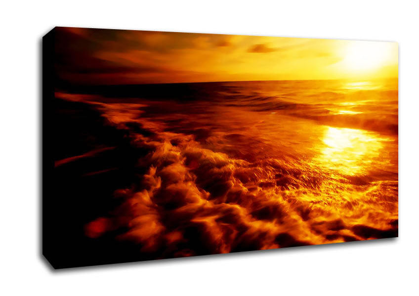 The Ebb Of The Sunlit Ocean Wide Canvas Print handmade in the UK. Stretched over a 2 inch thick wooden box frame, ready to hang on your wall.