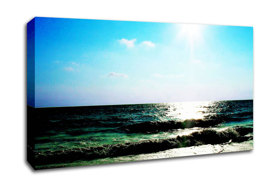The Waves Of The Ocean Wide Canvas Print handmade in the UK. Stretched over a 2 inch thick wooden box frame, ready to hang on your wall.