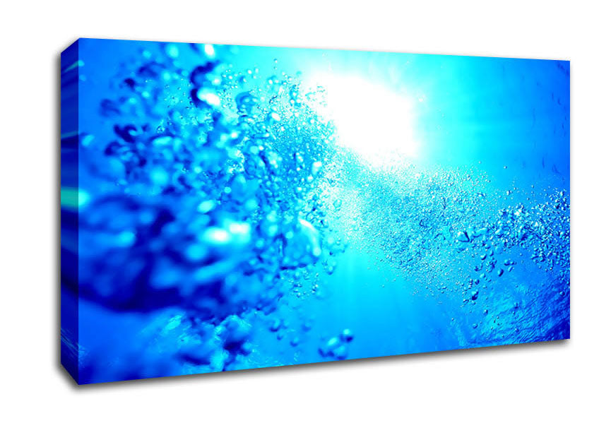 Water Elements In The Sun Wide Canvas Print handmade in the UK. Stretched over a 2 inch thick wooden box frame, ready to hang on your wall.