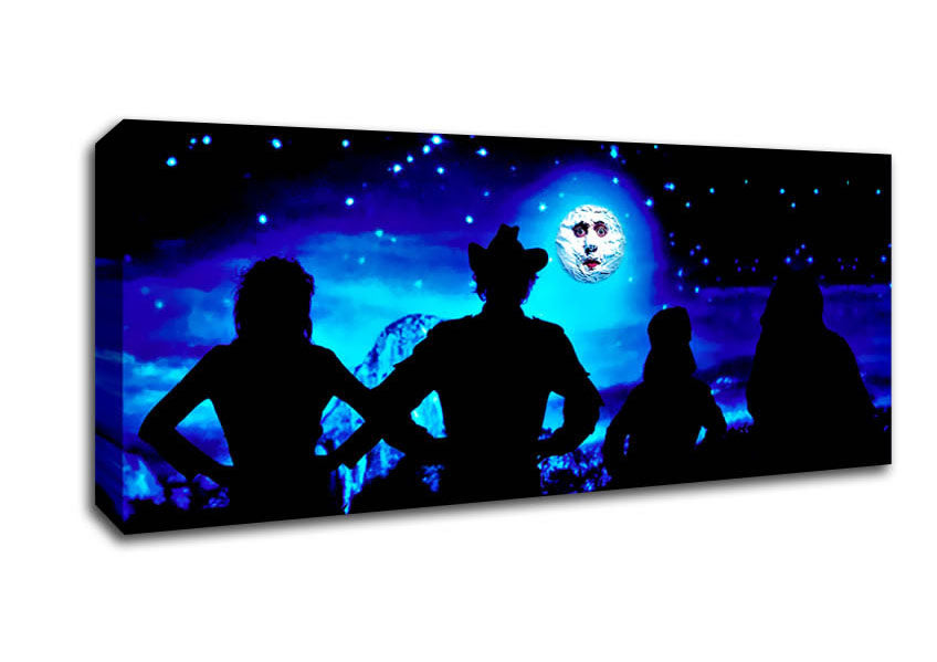 The Mighty Boosh Moon Face Panoramic Canvas Print handmade in the UK. Stretched over a 2 inch thick wooden box frame, ready to hang on your wall.
