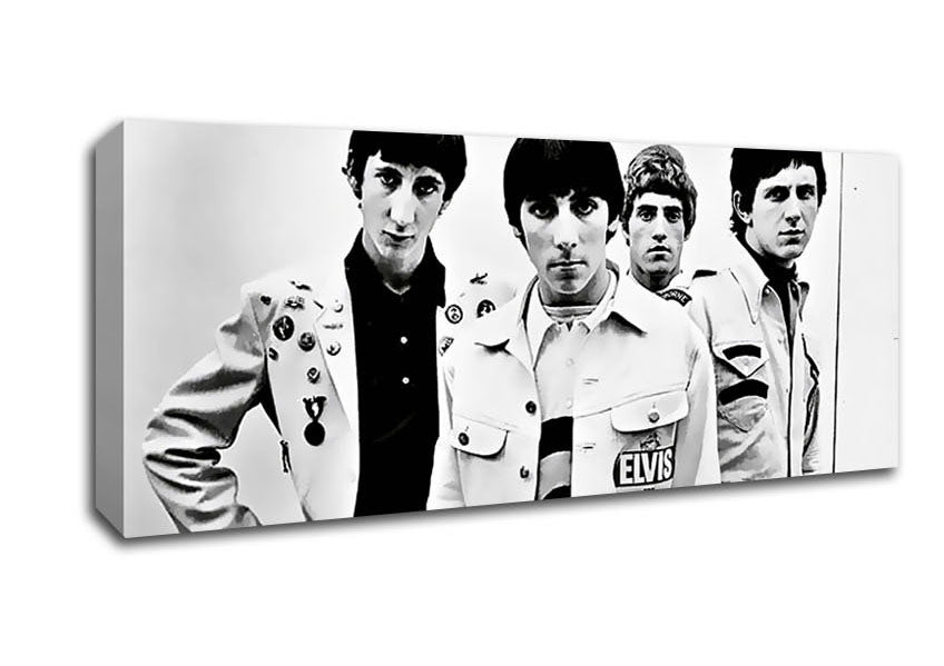The Who Retro 1960s Panoramic Canvas Print handmade in the UK. Stretched over a 2 inch thick wooden box frame, ready to hang on your wall.