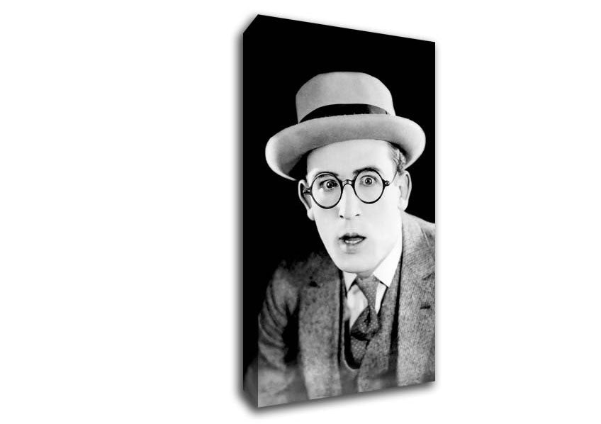 Harold Lloyd Portrait Wide Canvas Print handmade in the UK. Stretched over a 2 inch thick wooden box frame, ready to hang on your wall.