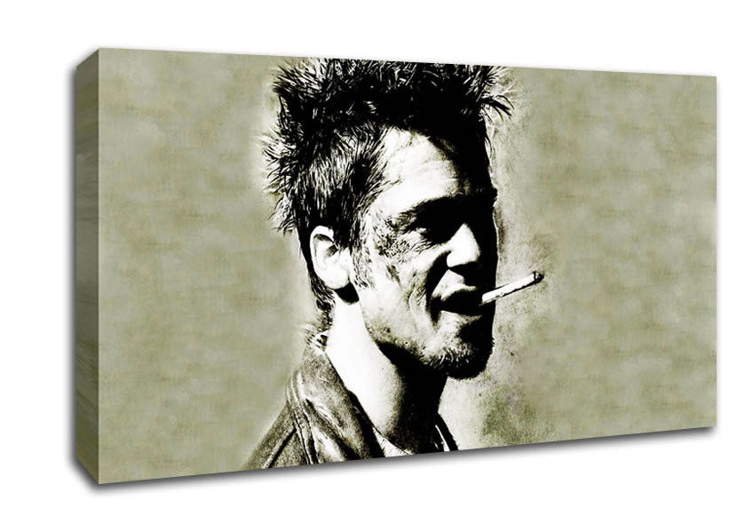 Tyler Durden Brad Pitt Wide Canvas Print handmade in the UK. Stretched over a 2 inch thick wooden box frame, ready to hang on your wall.