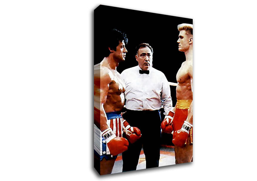 Rocky Vs Russia Canvas Print handmade in the UK. Stretched over a 2 inch thick wooden box frame, ready to hang on your wall.