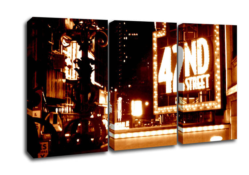 New York City 42Nd Street 3 Panel Canvas Print handmade in the UK. Stretched over a 2 inch thick wooden box frame, ready to hang on your wall.