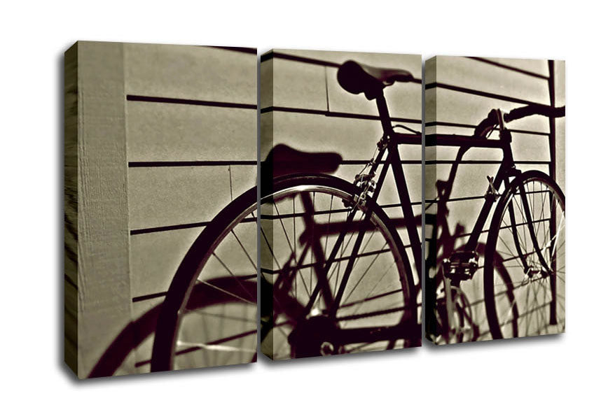 Vintage Schwinn Bike 3 Panel Canvas Print handmade in the UK. Stretched over a 2 inch thick wooden box frame, ready to hang on your wall.