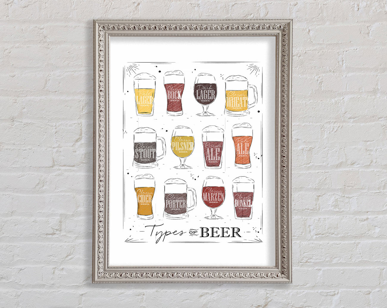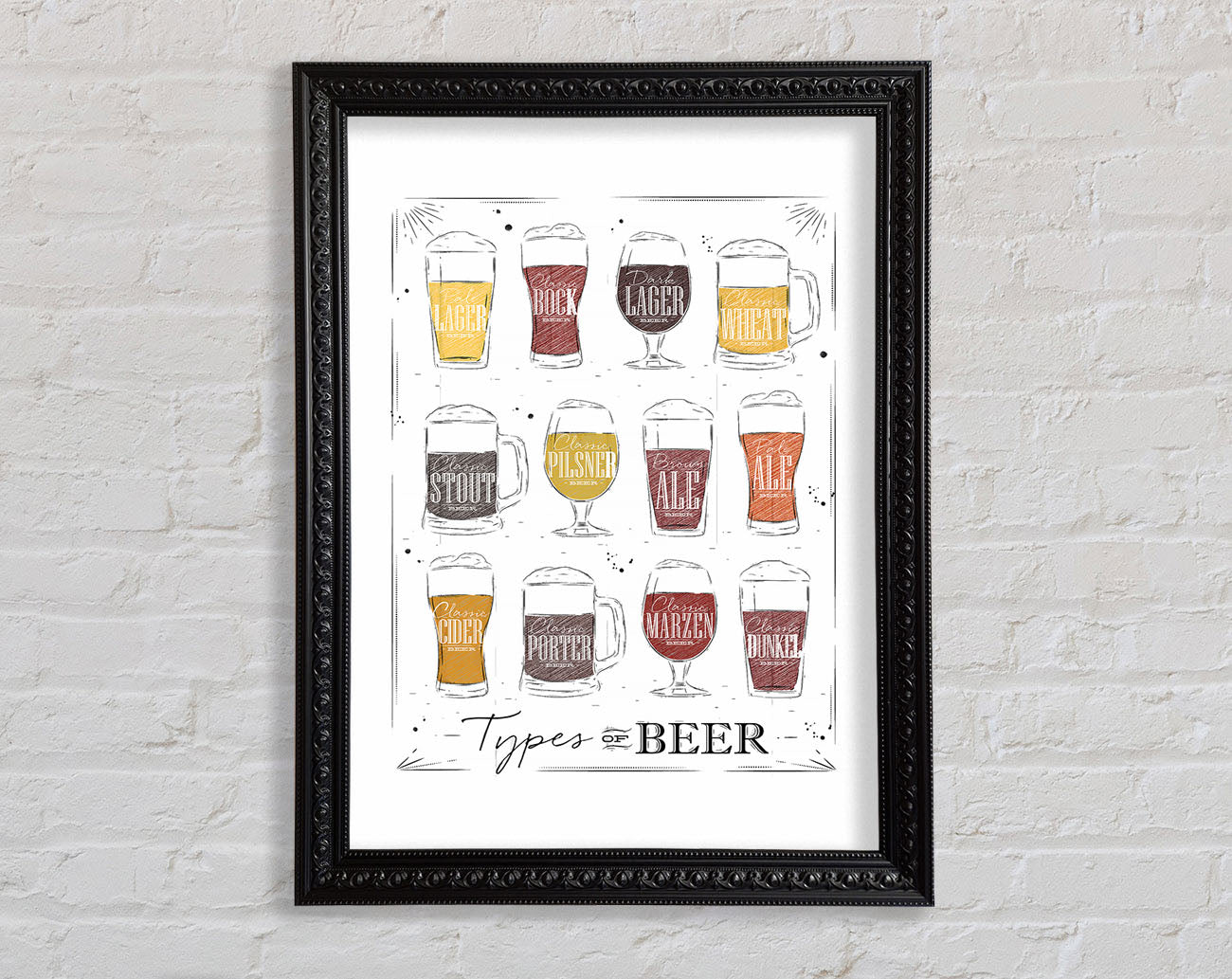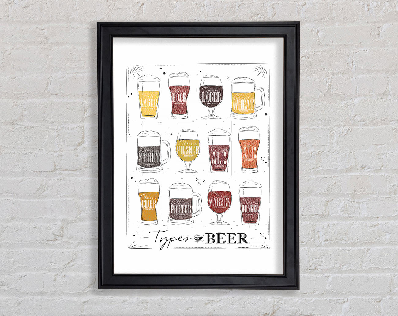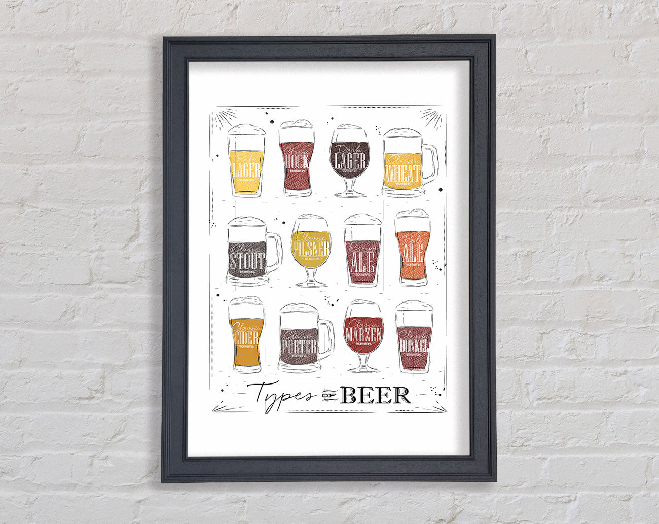 Title: Types O f Beer Framed Wall Art