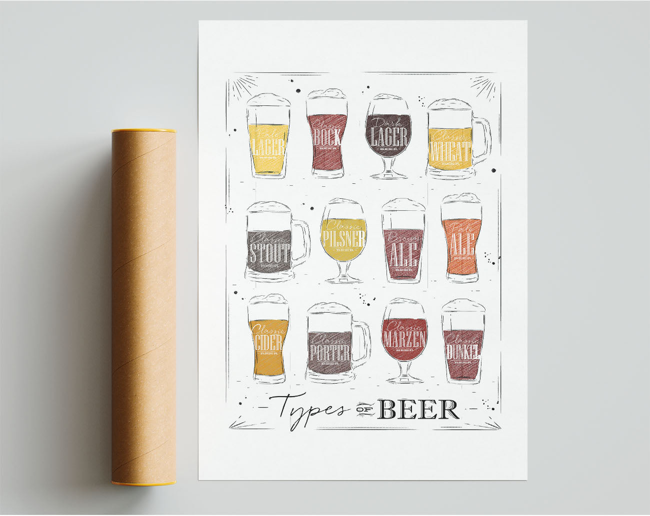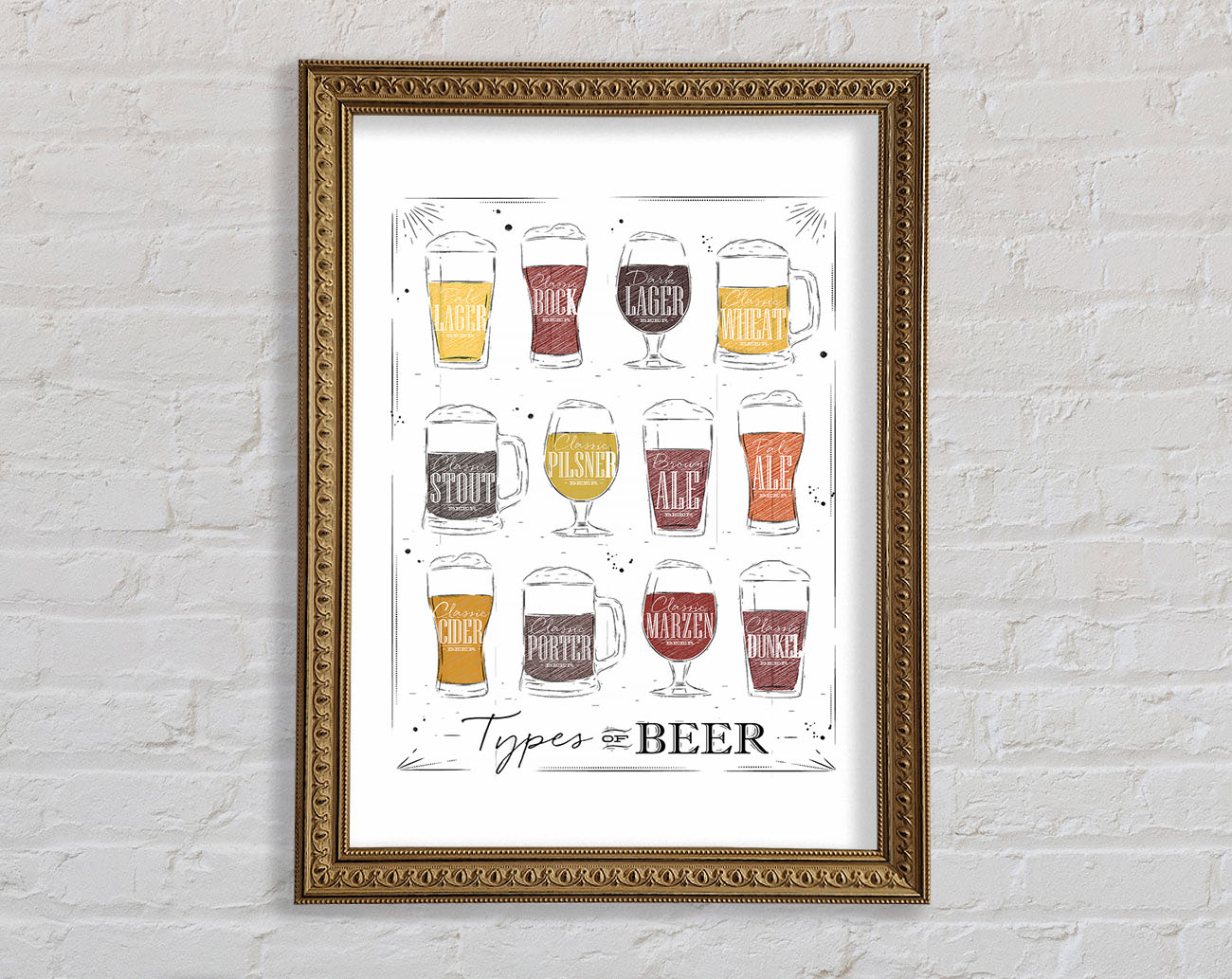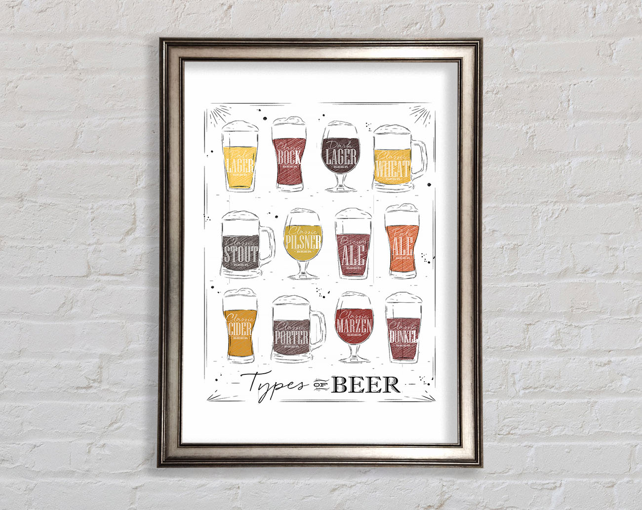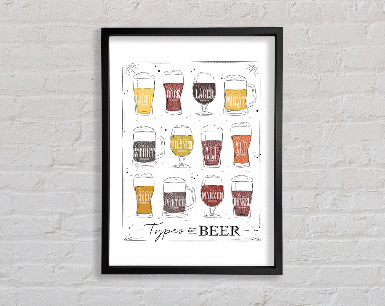 Title: Types O f Beer Framed Wall Art