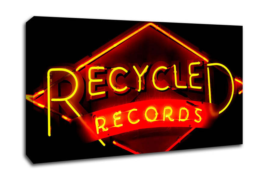 Recycled Records Wide Canvas Print handmade in the UK. Stretched over a 2 inch thick wooden box frame, ready to hang on your wall.