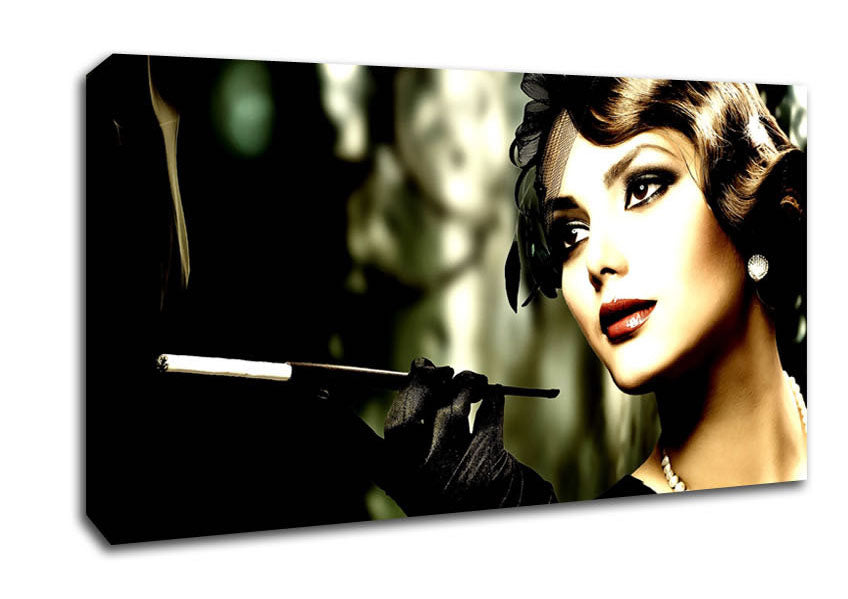 Retro Woman Wide Canvas Print handmade in the UK. Stretched over a 2 inch thick wooden box frame, ready to hang on your wall.