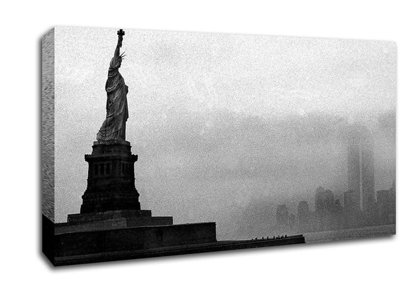 Statue Of Liberty Vintage Wide Canvas Print handmade in the UK. Stretched over a 2 inch thick wooden box frame, ready to hang on your wall.