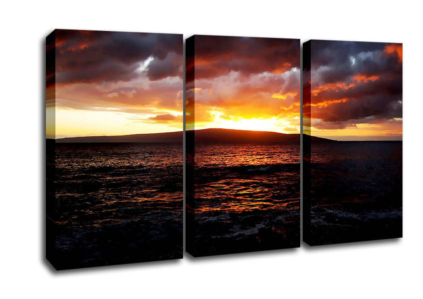 Movement Of The Ocean Sun 3 Panel Canvas Print handmade in the UK. Stretched over a 2 inch thick wooden box frame, ready to hang on your wall.