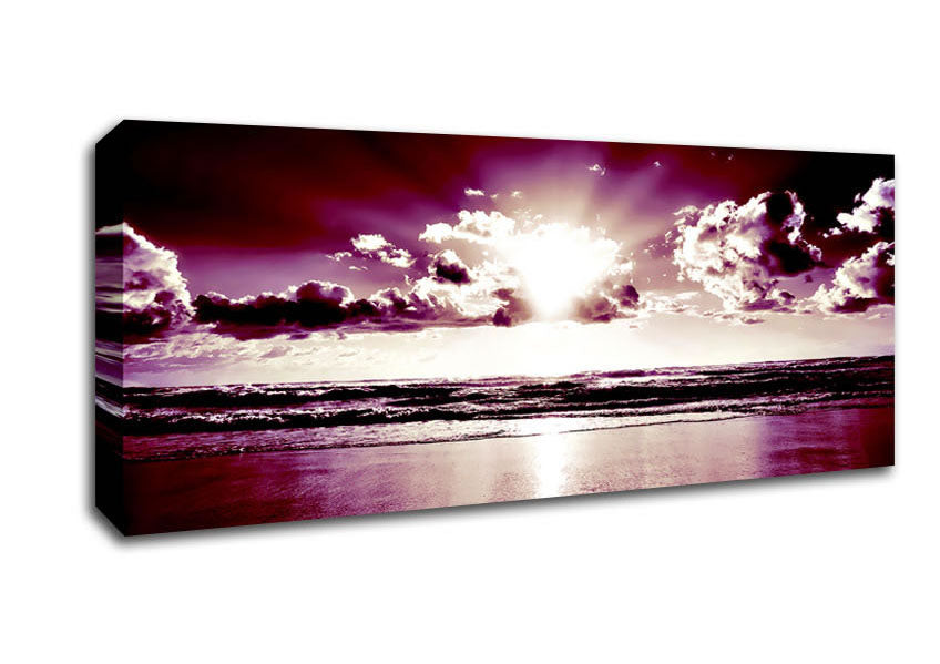 Purple Sunburst Panoramic Canvas Print handmade in the UK. Stretched over a 2 inch thick wooden box frame, ready to hang on your wall.