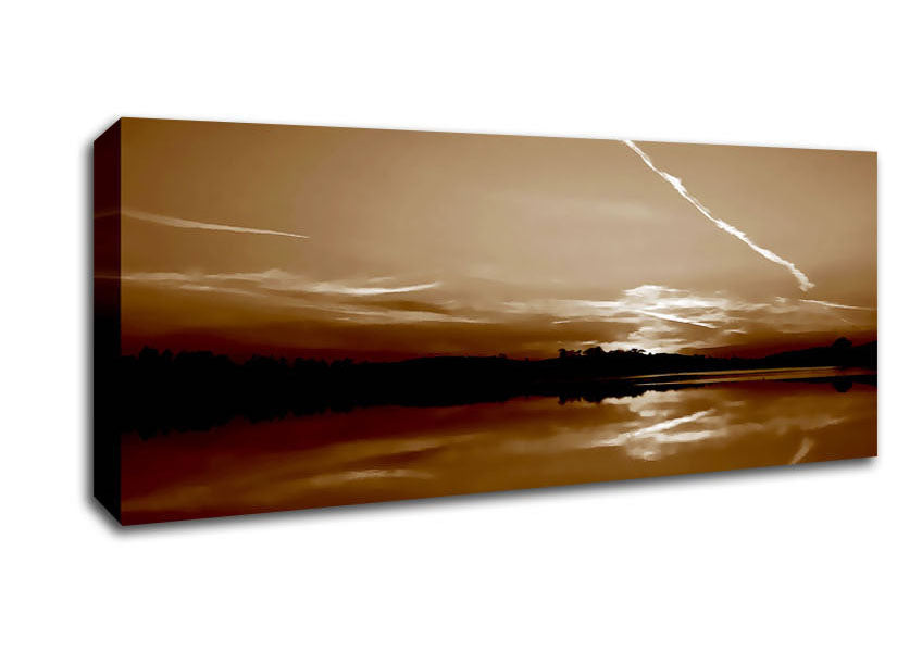 Tranquil Chocolate Lake Panoramic Canvas Print handmade in the UK. Stretched over a 2 inch thick wooden box frame, ready to hang on your wall.