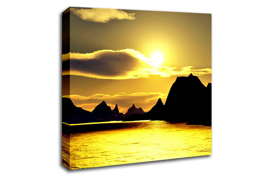 Yellow Ocean Mountain Square Canvas Print handmade in the UK. Stretched over a 2 inch thick wooden box frame, ready to hang on your wall.
