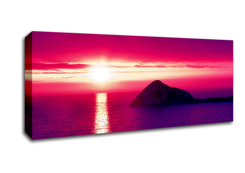 The Sun Across The Ocean Sky Panoramic Canvas Print handmade in the UK. Stretched over a 2 inch thick wooden box frame, ready to hang on your wall.