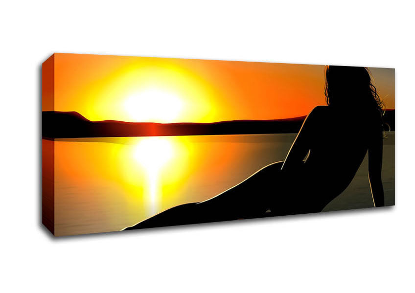 Woman In The Shade Panoramic Canvas Print handmade in the UK. Stretched over a 2 inch thick wooden box frame, ready to hang on your wall.