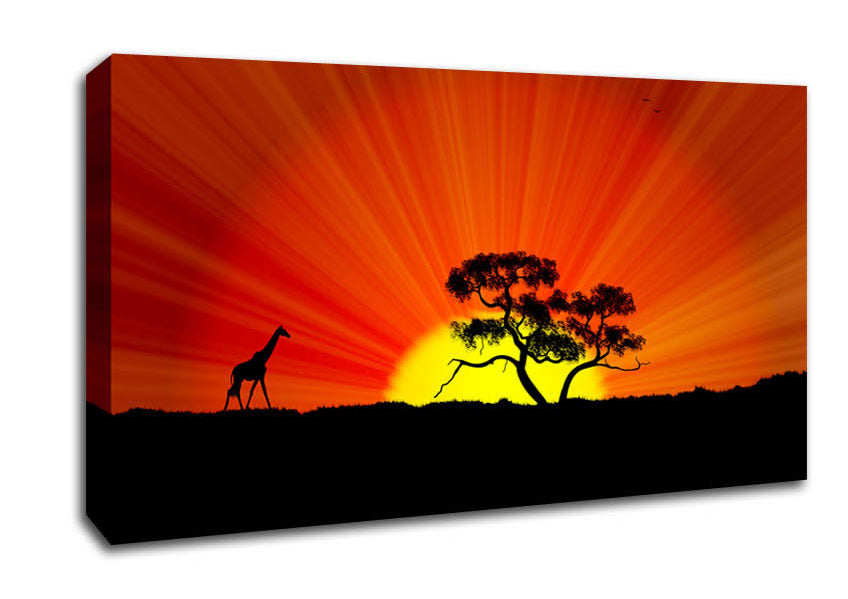 African Sunblaze Wide Canvas Print handmade in the UK. Stretched over a 2 inch thick wooden box frame, ready to hang on your wall.