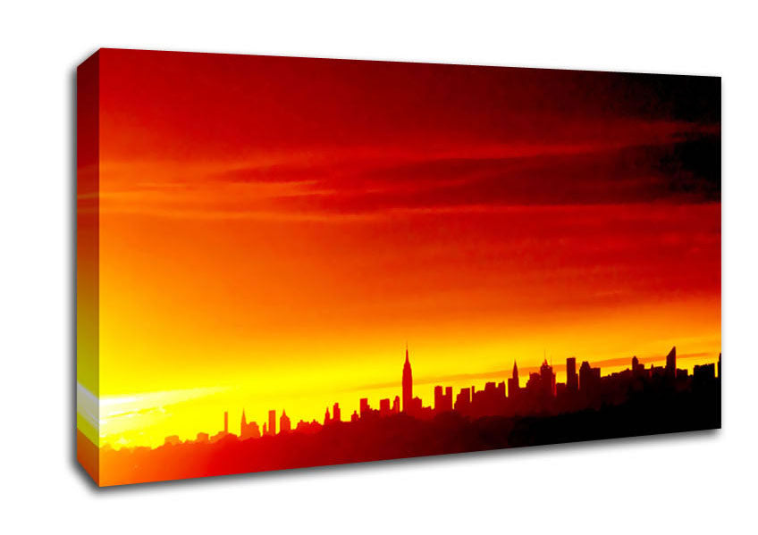 Manhattan Ny Wide Canvas Print handmade in the UK. Stretched over a 2 inch thick wooden box frame, ready to hang on your wall.