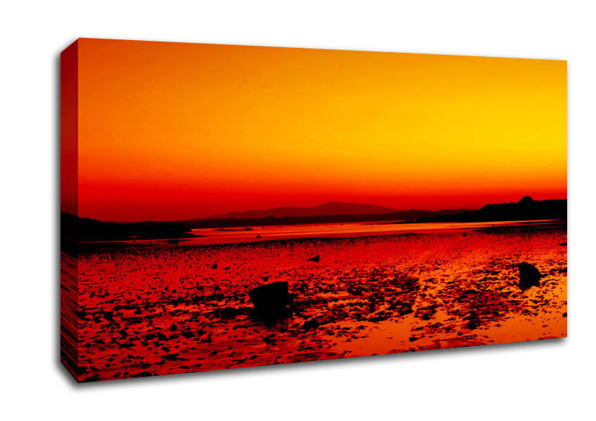 Orange Red Ocean Surprise Wide Canvas Print handmade in the UK. Stretched over a 2 inch thick wooden box frame, ready to hang on your wall.