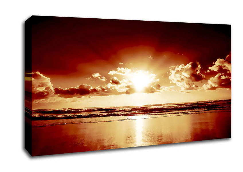 Peach Ocean Sunrise Wide Canvas Print handmade in the UK. Stretched over a 2 inch thick wooden box frame, ready to hang on your wall.