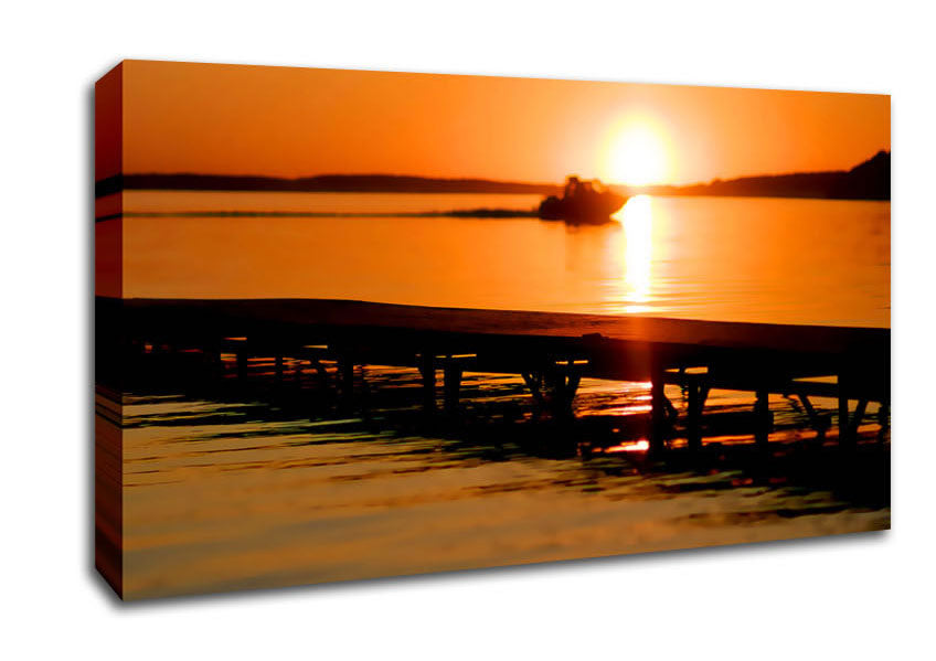 Peach Sunset Jetty Wide Canvas Print handmade in the UK. Stretched over a 2 inch thick wooden box frame, ready to hang on your wall.