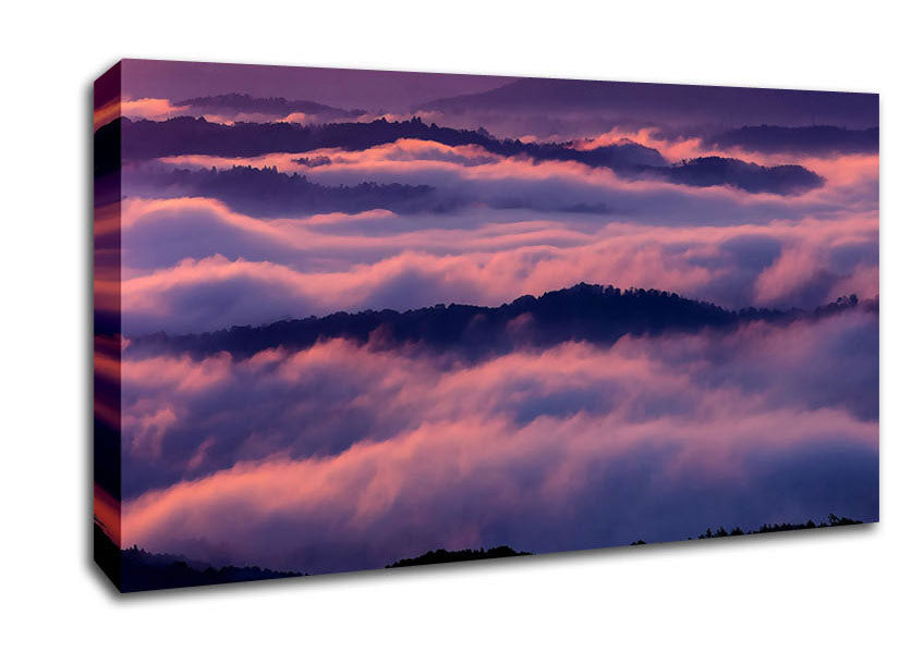 Sea Of Pink Clouds Wide Canvas Print handmade in the UK. Stretched over a 2 inch thick wooden box frame, ready to hang on your wall.