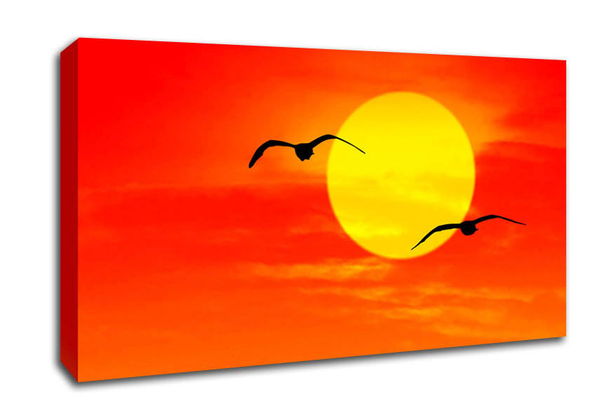 Seagulls At Sunrise Florida Wide Canvas Print handmade in the UK. Stretched over a 2 inch thick wooden box frame, ready to hang on your wall.