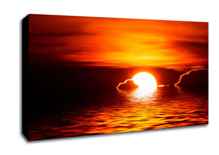 The Sun Falls In The Ocean Wide Canvas Print handmade in the UK. Stretched over a 2 inch thick wooden box frame, ready to hang on your wall.