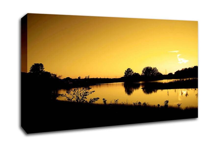 Yellow Peaceful Waters Wide Canvas Print handmade in the UK. Stretched over a 2 inch thick wooden box frame, ready to hang on your wall.
