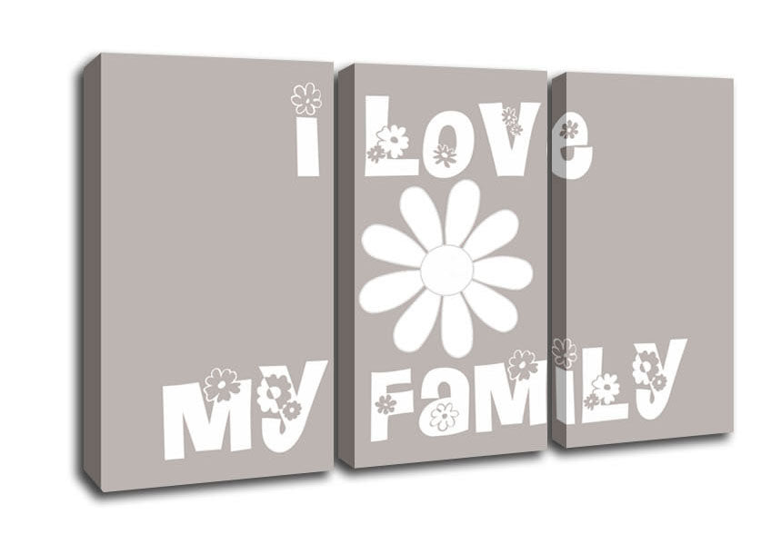 Boys room Quote I Love My Family Beige 3 Panel Canvas Print handmade in the UK. Stretched over a 2 inch thick wooden box frame, ready to hang on your wall.