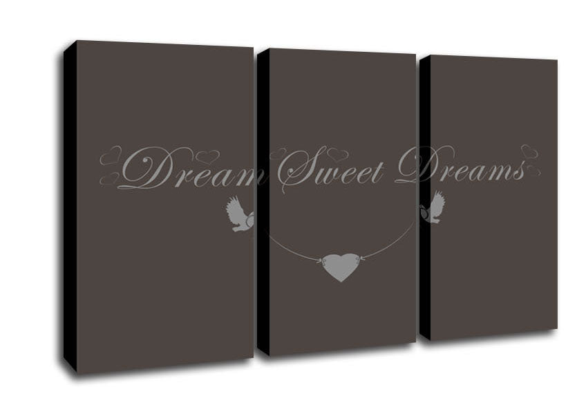 Dream Sweet Dreams Chocolate 3 Panel Canvas Print handmade in the UK. Stretched over a 2 inch thick wooden box frame, ready to hang on your wall.