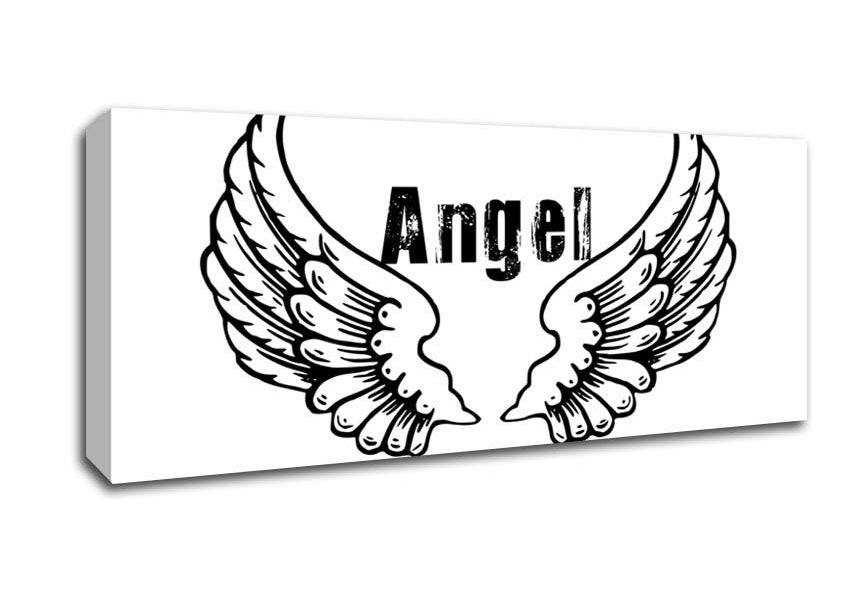 Angel Wings 2 White Panoramic Canvas Print handmade in the UK. Stretched over a 2 inch thick wooden box frame, ready to hang on your wall.