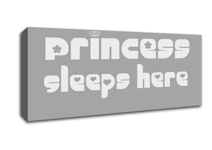 Princess sleeps 2 Grey White Panoramic Canvas Print handmade in the UK. Stretched over a 2 inch thick wooden box frame, ready to hang on your wall.