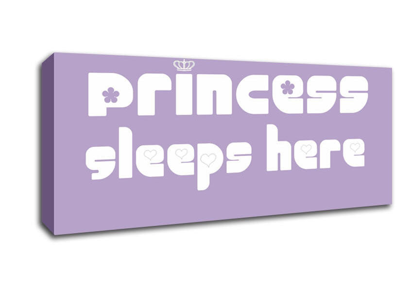 Princesss Sleeps Here 2 Lilac Panoramic Canvas Print handmade in the UK. Stretched over a 2 inch thick wooden box frame, ready to hang on your wall.