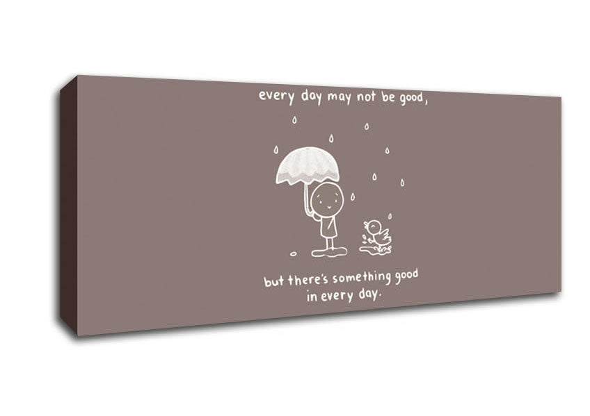 Theres Something Good In Every Day Beige Panoramic Canvas Print handmade in the UK. Stretched over a 2 inch thick wooden box frame, ready to hang on your wall.