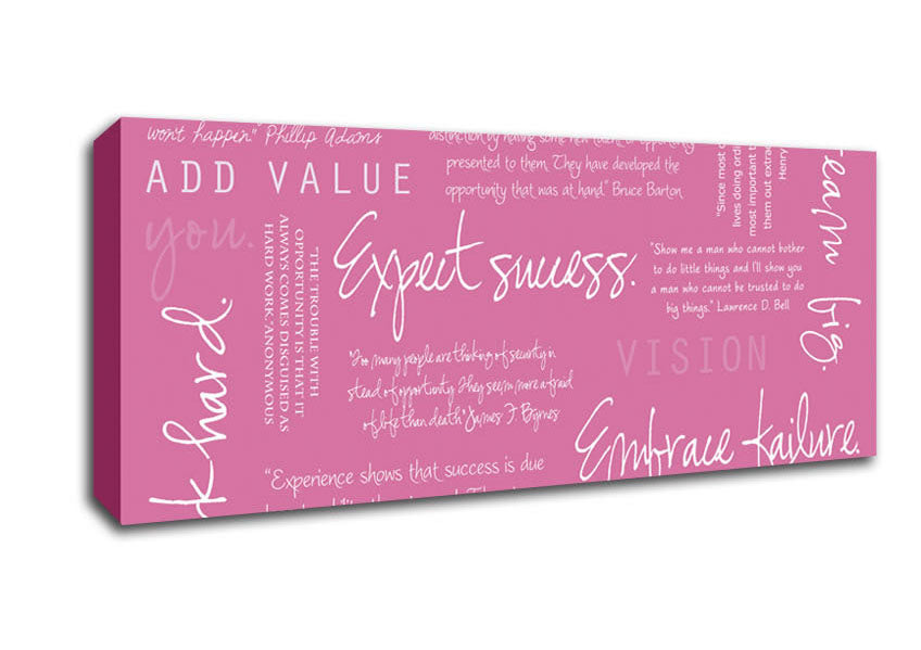 Work Hard Dream Big Expect Success Pink Panoramic Canvas Print handmade in the UK. Stretched over a 2 inch thick wooden box frame, ready to hang on your wall.