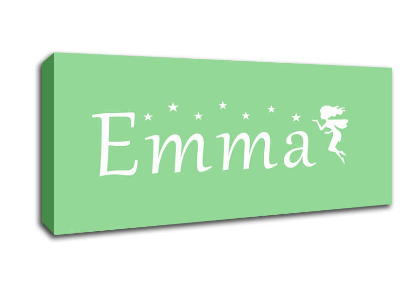 Your Name In Fairy Dust Green Panoramic Canvas Print handmade in the UK. Stretched over a 2 inch thick wooden box frame, ready to hang on your wall.