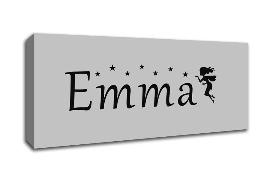 Your Name In Fairy Dust Grey Panoramic Canvas Print handmade in the UK. Stretched over a 2 inch thick wooden box frame, ready to hang on your wall.