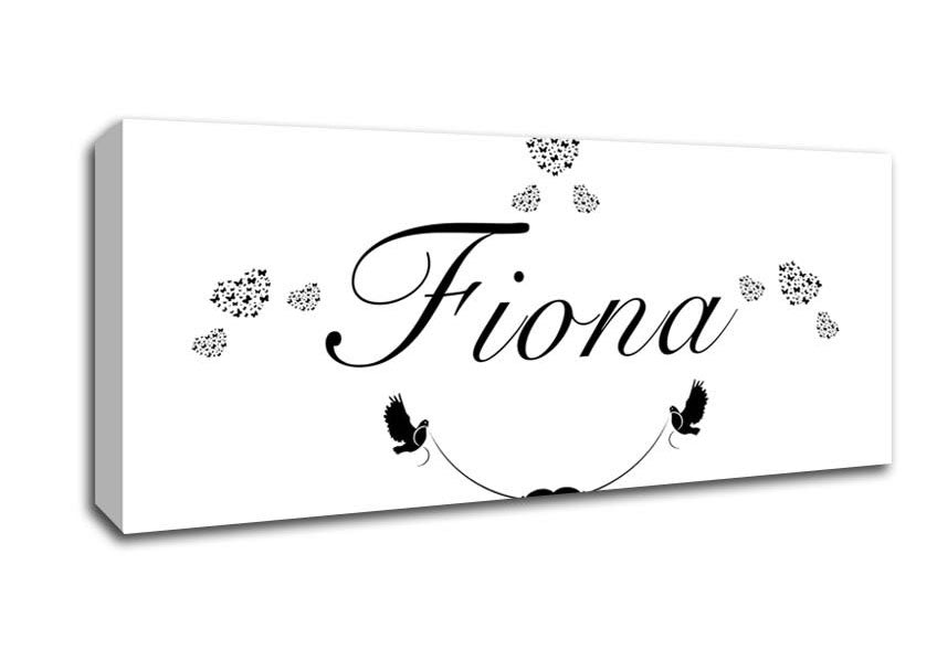 Your Name In Hearts White Panoramic Canvas Print handmade in the UK. Stretched over a 2 inch thick wooden box frame, ready to hang on your wall.