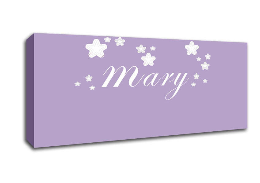 Your Name In Stars Lilac Panoramic Canvas Print handmade in the UK. Stretched over a 2 inch thick wooden box frame, ready to hang on your wall.
