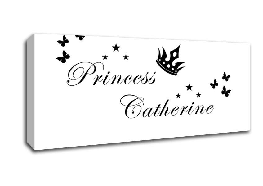 Your Own Name Princess 2 White Panoramic Canvas Print handmade in the UK. Stretched over a 2 inch thick wooden box frame, ready to hang on your wall.