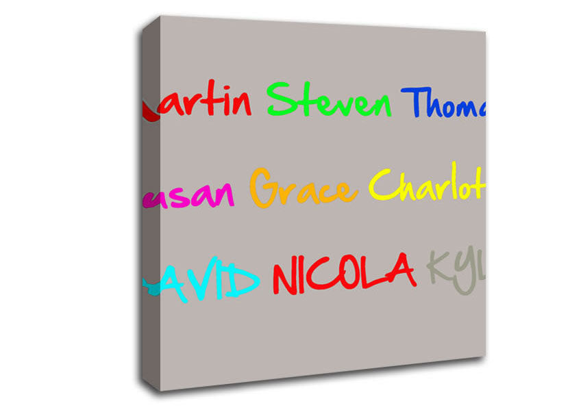 Your Name In A Choice Of Colours Beige Square Canvas Print handmade in the UK. Stretched over a 2 inch thick wooden box frame, ready to hang on your wall.