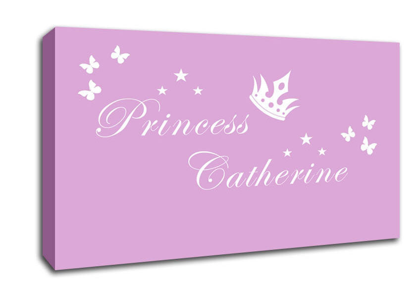 Your Own Name Princess 2 Pink Wide Canvas Print handmade in the UK. Stretched over a 2 inch thick wooden box frame, ready to hang on your wall.
