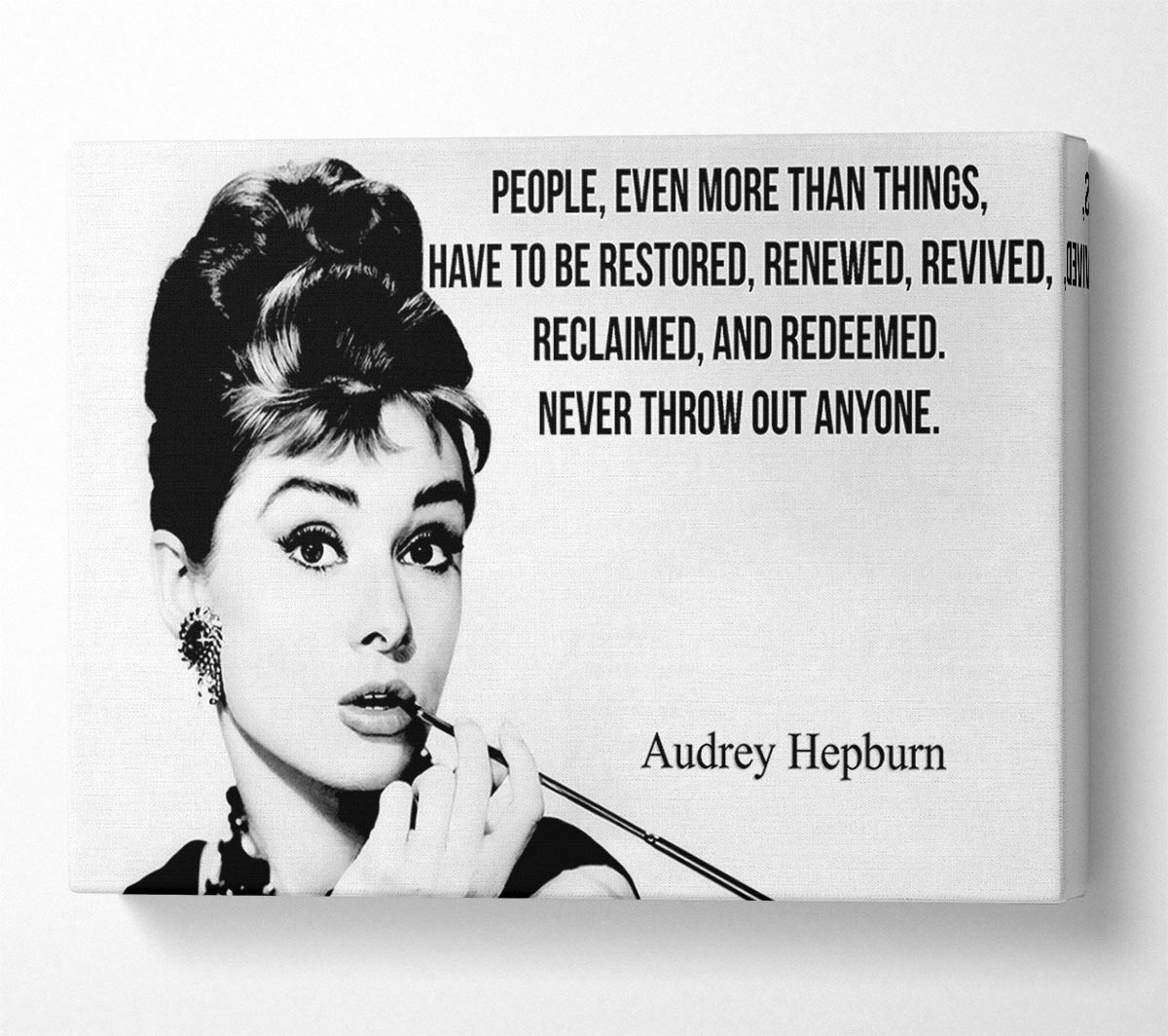 Movie Quote Audrey Hepburn Never Throw Out Canvas Print handmade in the UK. Stretched over a 2 inch thick wooden box frame, ready to hang on your wall.
