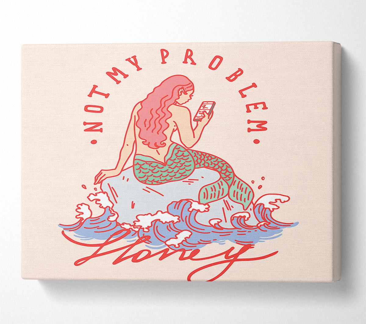 Not My Problem Mermaid Canvas Print handmade in the UK. Stretched over a 2 inch thick wooden box frame, ready to hang on your wall.