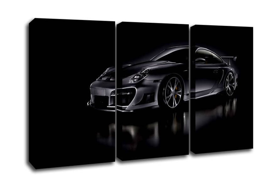 Dark Porsche GT Street Racing 3 Panel Canvas Print handmade in the UK. Stretched over a 2 inch thick wooden box frame, ready to hang on your wall.
