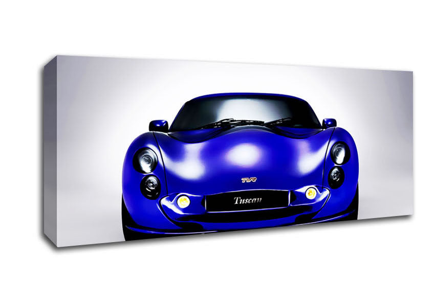 Tvr Tuscan Blue Purple Panoramic Canvas Print handmade in the UK. Stretched over a 2 inch thick wooden box frame, ready to hang on your wall.
