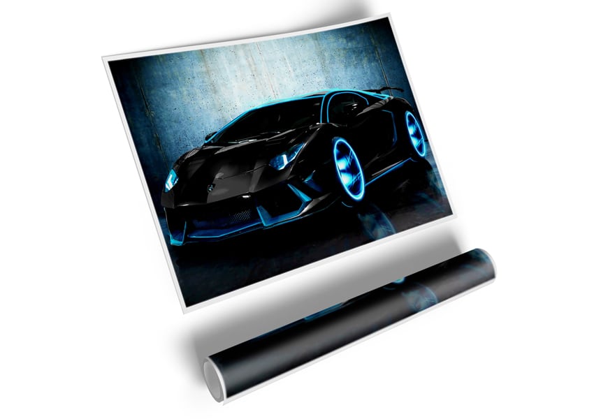 Tron Lamborghini Aventador Poster printed on high quality canvas paper, ready to display.